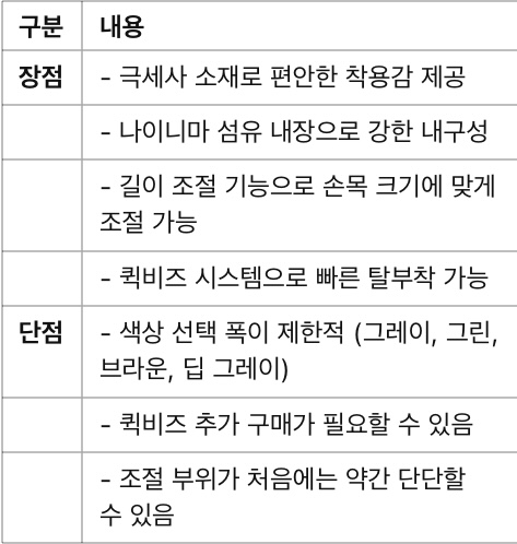 ✔ 착용감 ★★★★★ | ✔ 내구성 ★★★★★ | ✔ 조절 기능 ★★★★☆ | ✔ 가격 대비 만족도 ★★★★☆